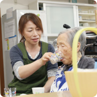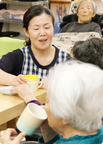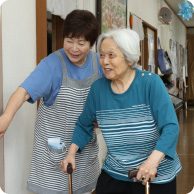 いつまでも元気で過ごしてもらいたいから、できることはなるべくご自分で。必要なときに必要なことを「そっと」お手伝いさせていただく。それが恵の家の考えです。スタッフは利用者さんの「パートナー」です。