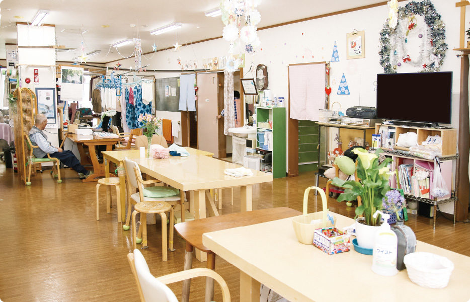 お茶を飲んでいると聞こえてくる野菜を刻む音、やさしく漂ってくる美味しそうな匂い。自宅にいれば「あたりまえの風景」です。利用者さんにとっての自宅だからこそ、普通を感じられる空間にしています。